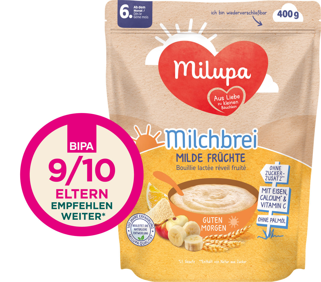 BIPA hat Eltern in Österreich gefragt: 9/10 Eltern empfehlen den Milchbrei Milde Früchte weiter!*